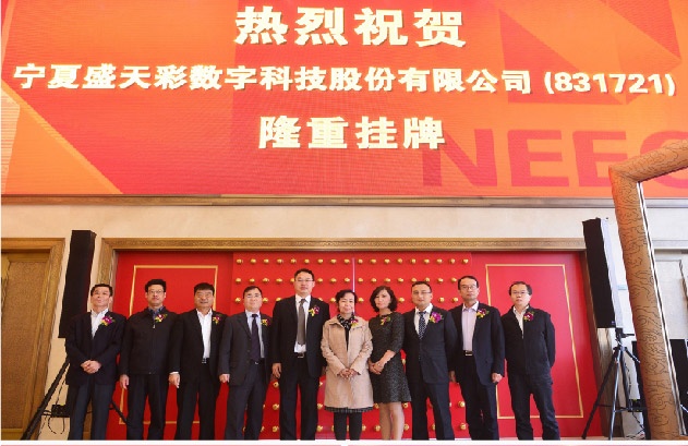 全國中小企業(yè)股份轉(zhuǎn)讓系統(tǒng)(俗稱“新三板”)在京舉行掛牌儀式,寧夏盛天彩數(shù)字科技股份有限公司新三板掛牌交易。